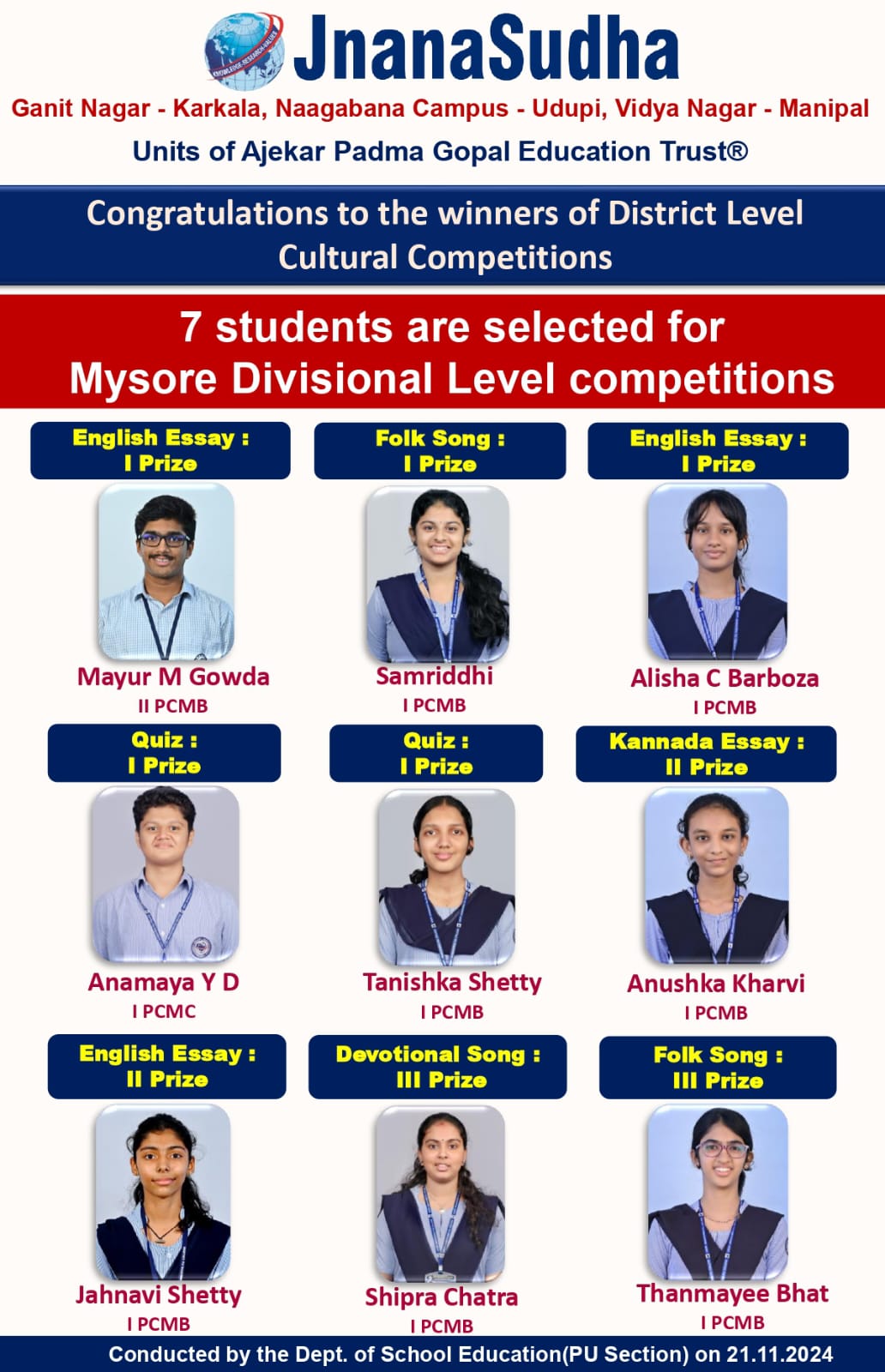 7 Students Selected for Mysore Divisional Level Compititions